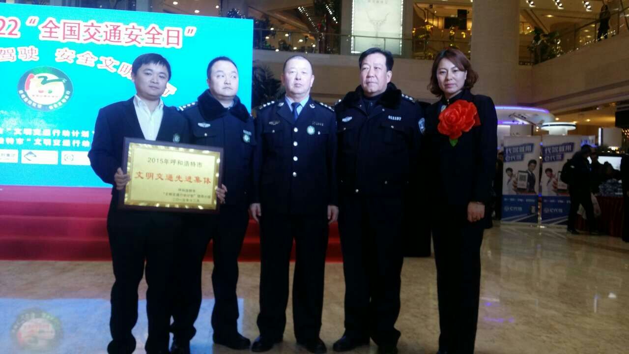 12月2日上午,内蒙古自治区公安厅交管局呼和浩特市公安局交管支队在呼和浩特市政府联合举办2015年文明交通先进单位及个人表彰和“122”全国交通安全日宣传活动。 此次文明交通活动的主题是弘扬交通安全法治精神,普及交通安全风险防范意识,进一步倡导通行规则意识、守法自律意识、社会责任意识、文明交通意识、公共道德意识。倡导抵制追逐竞驶、醉酒驾驶等构成危险驾驶罪的交通违法,抵制“路怒”、不礼让斑马线、占用应急车道等危险驾驶行为等。通过文明交通的创建和表彰活动,可有力规范企业与个人的行为。 在本次全国交通安全日宣传和表彰活动中,呼和浩特市际通旅游客运有限公司获得“2015年呼和浩特市文明交通先进集体”、总经理孙利霞同志获得“2015年呼和浩特市文明交通先进个人”的荣誉称号。 .jpg)